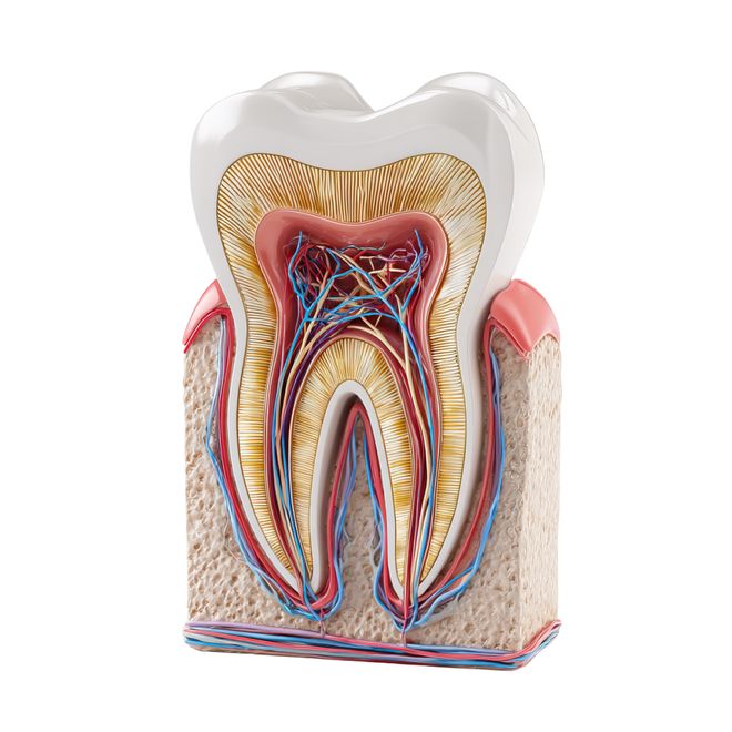 牙本质是构成牙齿主体的硬组织,颜色淡黄而有光泽,硬度比牙釉质低。牙本质中有神经末梢,受到刺激时有酸痛感。过度磨损而导致的牙本质暴露也会让人牙痛。