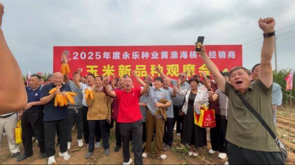 9月10日清晨,郑州市荥阳市广武镇后王村玉米地里热闹非凡。由河南永乐种业有限公司(以下简称“永乐种业”)主办,河南电视台承办的2025年度黄淮海核心经销商新品种观摩暨财富共享大会正在火热进行。来自河南、河北、山东、江苏、安徽、湖北、陕西等省市的育种专家、经销商、种植大户们共800余人,大家共同开启这场探寻永乐888、YL819两大玉米品种抗逆高产的密码,共话农业未来。